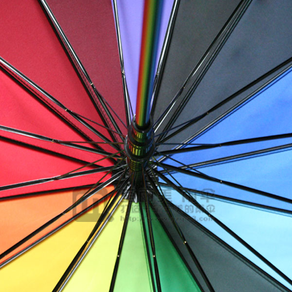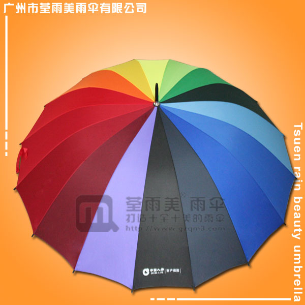 【广州制伞厂】生产-中国人寿16骨彩虹伞 彩色直杆伞 广告彩虹伞 雨伞尺寸27寸,展开伞架直径约137cm 经济、实用、大方!定做热线:020-81801255 13640737977 采用8条钢铁骨架钢铁中棒,配搭PG布料高密度防水防紫外线经久耐用,伞面采用16个颜色布料抢制作鲜艳夺目