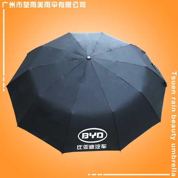 伞厂 生产-比亚迪汽车10骨自开收雨伞 三折广告伞 折叠雨伞 雨伞、黑色纤维伞骨电着中棒10骨伞架、自开收磨砂手柄搭配春亚纺面料防泼水、防紫外线。雨伞尺寸23寸,展开伞架直径约116cm 经济、实用、大方!