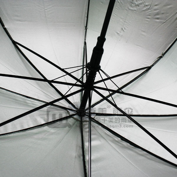 采用钢铁中棒,8条钢铁槽骨伞架,配搭高密度银胶布料,弯手柄雨伞尺寸23寸,展开伞架直径约116cm