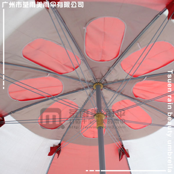 伞架采用双骨防风型太阳伞骨架,伞面采用双层防风设计,配搭高密度牛津布料雨伞尺寸60寸,展开伞架直径约300cm 经济、大方