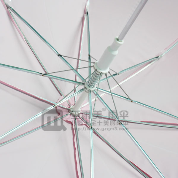 雨伞尺寸21寸,展开伞架直径约106cm 采用8条钢铁骨架,钢铁中棒,配搭PVC环保材料
