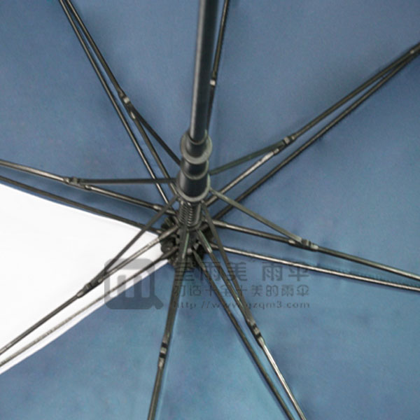 采用8条纤维伞骨架制作工艺,纤维中棒自动开关,配搭高密度抗紫外线PG布料,塑料弯手柄一片白色加柒片蓝色伞面风格独特更容易吸引客户眼球