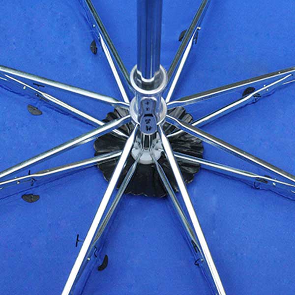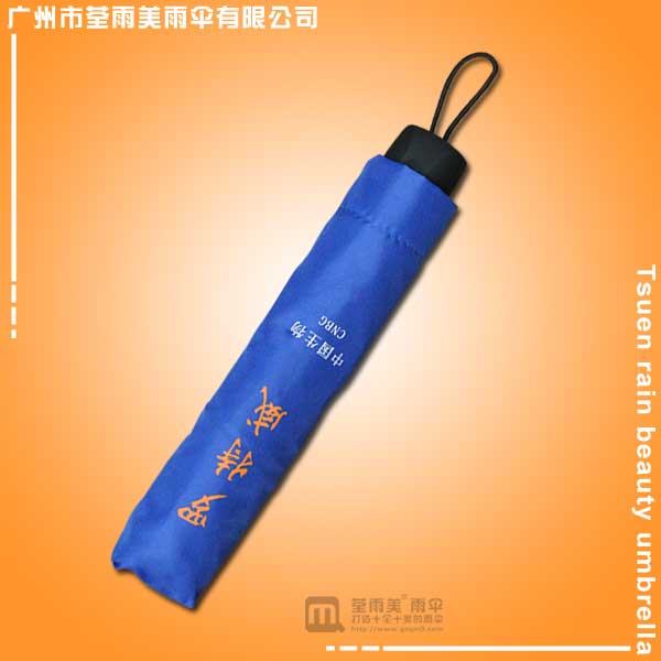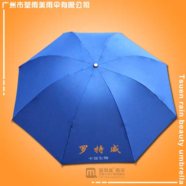 广州雨伞厂加工-罗特威中国生物三折伞 雨伞厂 广告折叠雨伞、伞架采用8条钢铁伞骨电镀架搭配蓝色防泼水碰击布制作,中棒到四杆加长设计搭配磨砂黑色伞头舒适、耐用。