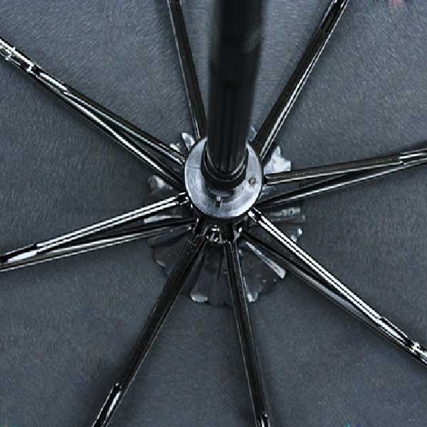 产品材质 雨伞采用钢铁中棒纤维伞骨制作、伞头自开收设计三折伞架、中棒电着黑色搭配加厚碰起布面料防晒、防泼水。