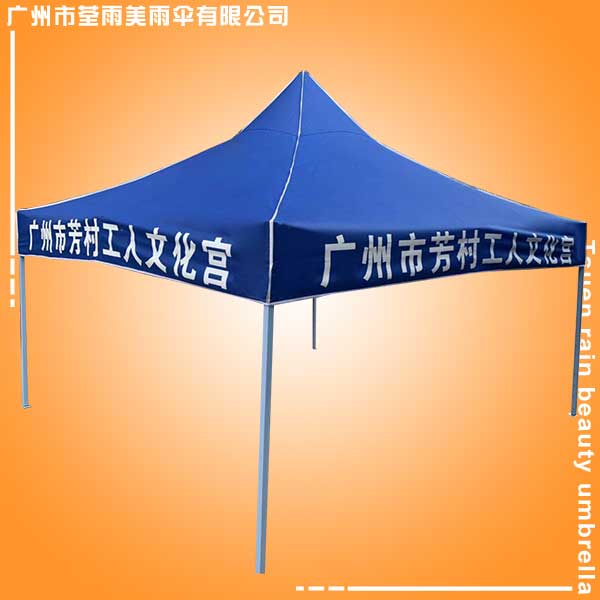 东莞帐篷厂 生产-文化宫帐篷 户外帐篷 帐篷厂 广州帐篷厂、18公斤烤白漆架子搭配600D帐篷布、掉边四面丝印白色logo蓝色蓬面耐热、耐脏。帐篷尺寸3x3、展开伞架直径约300cm 经济、实用、大方!