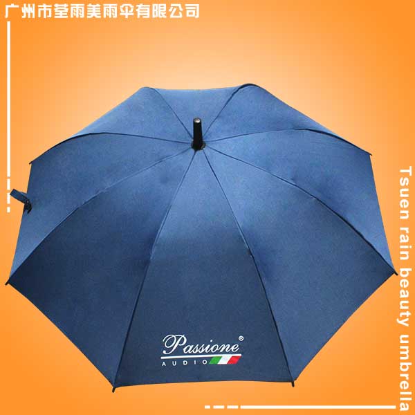 雨伞厂 生产-直杆广告伞 广州雨伞厂 雨伞厂家 礼品伞,23寸半纤维伞架、电着工艺防生锈、伞面采用190碰起银胶布制作、蓝色耐热伞面丝印三色,14厘铁中棒搭配纤维伞骨23寸雨伞、塑料弯伞头打开直径116cm。