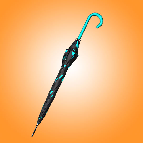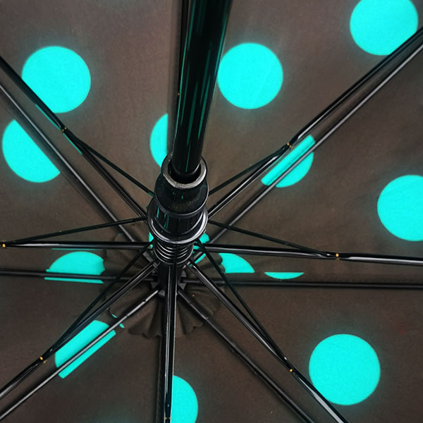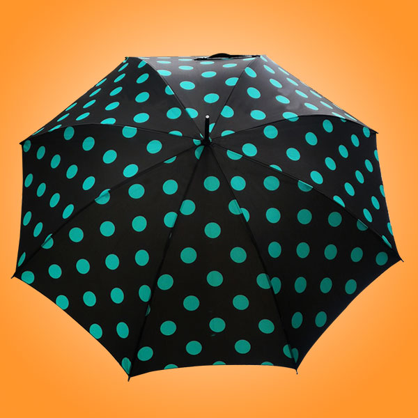 雨伞厂家 广州荃雨美雨伞厂家 佛山雨伞厂家 鹤山雨伞厂家、碰击布防泼水、大圆点丝印、纤维伞骨、一体化直出伞架、10厘超细中棒搭配彩色伞柄、高密度防水碰击布遮阳效果好、纤维伞骨柔韧性好不生锈不易折断