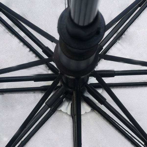 产品材质 塑胶弯头搭配钢铁中棒纤维伞骨、碰起银胶布遮阳效果好伞面单色丝印