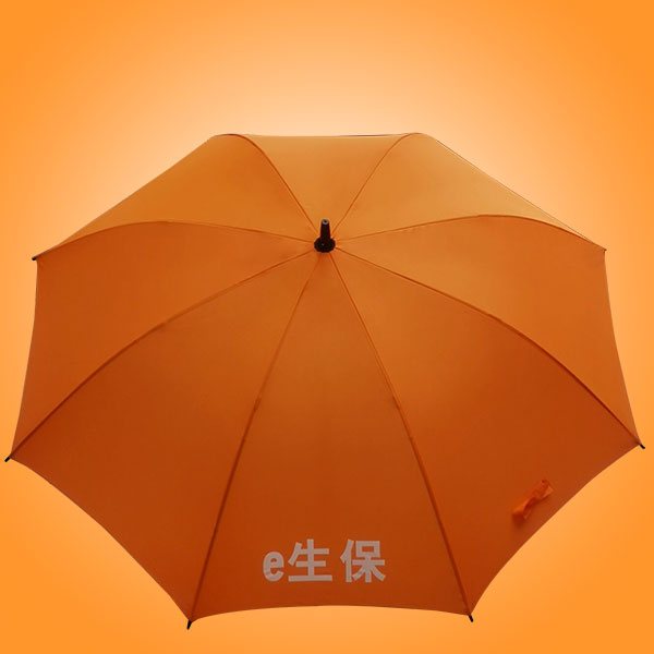 雨伞厂家 广东雨伞厂家 平安健康高尔夫雨伞厂家 雨伞制造厂家、雨伞尺寸27寸,展开伞架直径约137cm 经济、实用、大方!橙色碰起布丝印两面、高尔夫中段式纤维伞架搭配海绵手柄、配伞套色泽鲜艳logo明显