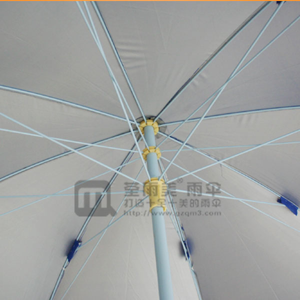 用钢铁太阳伞5.0防风骨架,配搭高密度210蓝色牛津银胶布料雨伞尺寸48寸,展开伞架直径约240cm 经济、大方!