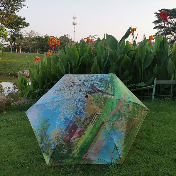 香槟铝合金伞架,合金塑料伞头、伞面数码印花,伞布防晒指数好适合出门携带,超轻、伞布超薄、伞面数码印花
