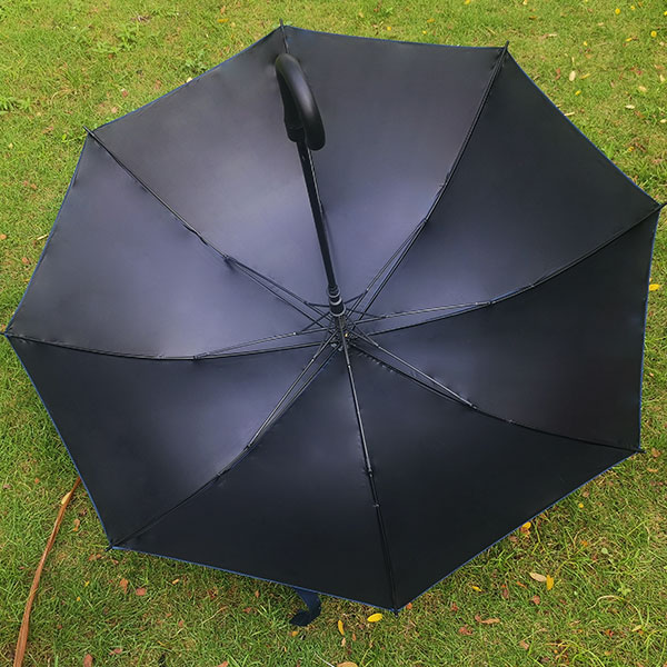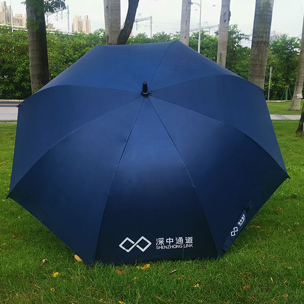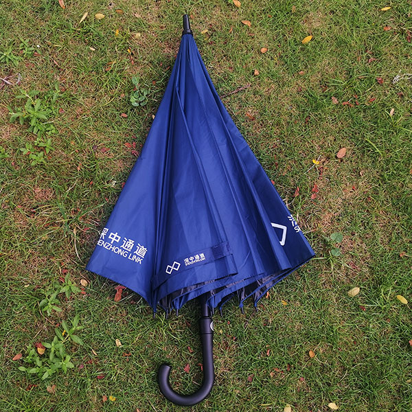 黑胶布搭配全纤维伞架,伞面全遮光处理,伞面丝印logo伞带丝印logo,塑胶原颗粒弯头制作,遮阳、防雨、不生锈、韧性好、伞面双人使用