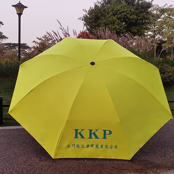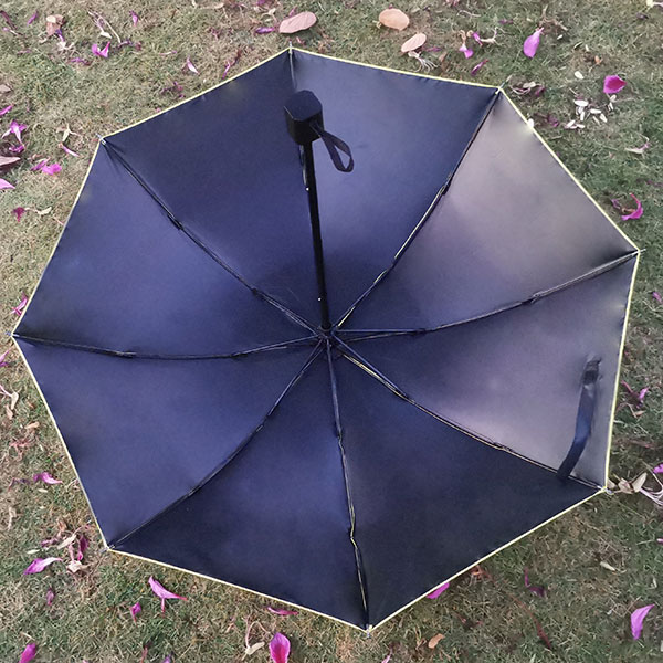 三折黑胶布21寸到4杆雨伞、伞面单色丝印伞布防泼水处理,伞架烤漆电着黑色搭配硬胶伞头
