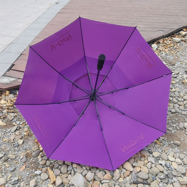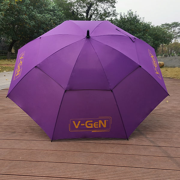 双层高尔夫雨伞、伞面春亚纺布料定做,伞面丝印4面,伞架纤维伞骨海绵伞头