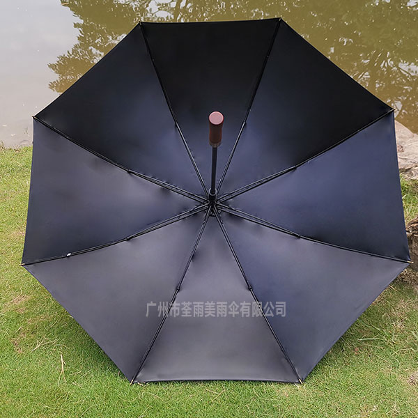 30寸钢铁中棒铁尾,伞面黑胶布料制作、木伞柄耐用不怕老化
