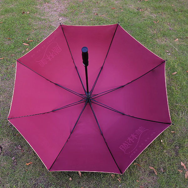 30寸加大包边高尔夫雨伞、伞面对称丝印两片、春亚纺防泼水布料、硬胶直柄伞头。