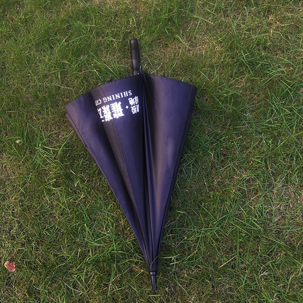 黑色黑胶布搭配高尔夫全纤维伞架、伞面白色logo对称丝印