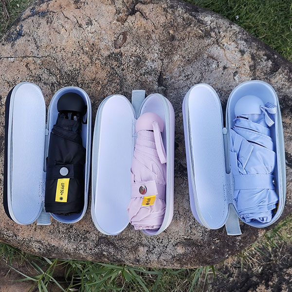 眼镜盒五折雨伞,6骨伞架更加轻巧方便携带钢铁骨架烤漆工艺,球形伞头耐用。