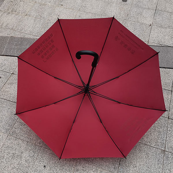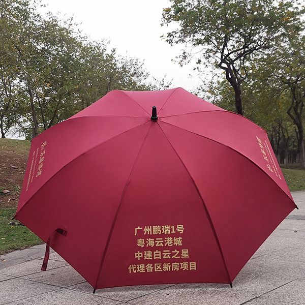 春亚纺碰击布丝印金色伞面、伞架纤维伞骨耐用,塑料弯钩方便携带。