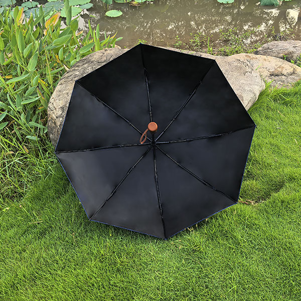 木柄自开收伞架、伞面全遮光黑胶布、伞头雕刻logo耐用,高端设计雨伞