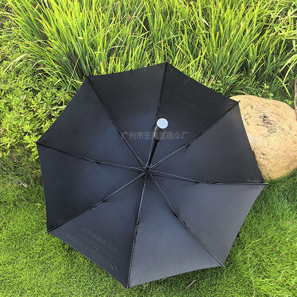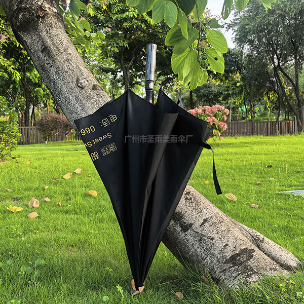 黑色加密碰起布,高尔夫伞架、伞面金色logo印刷两面,海绵伞头耐用