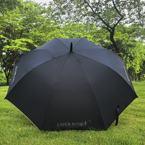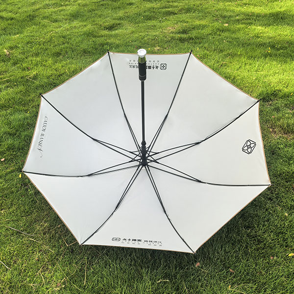 双层伞布内外印刷、电镀手柄尖傘顶、双层春亚纺布料防泼水处理,纤维伞骨韧性好。