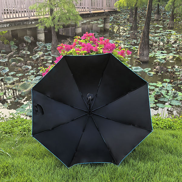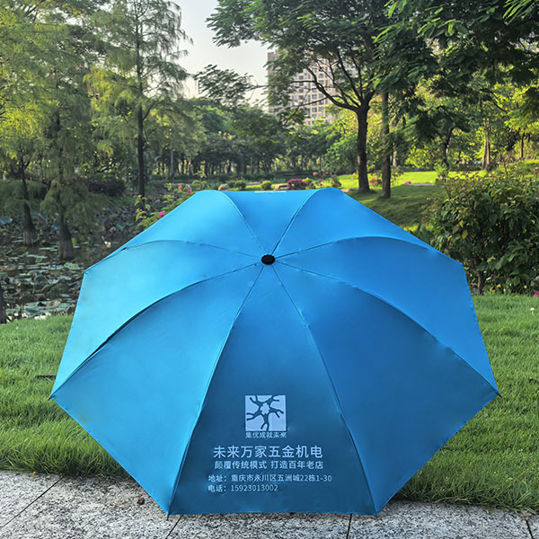 黑胶布料、三折加粗广告雨伞、伞面单色印刷2面,烤漆伞架结实耐用