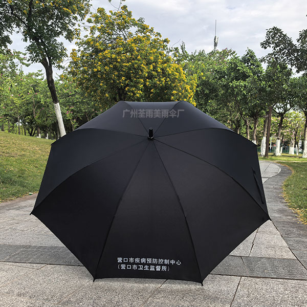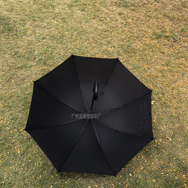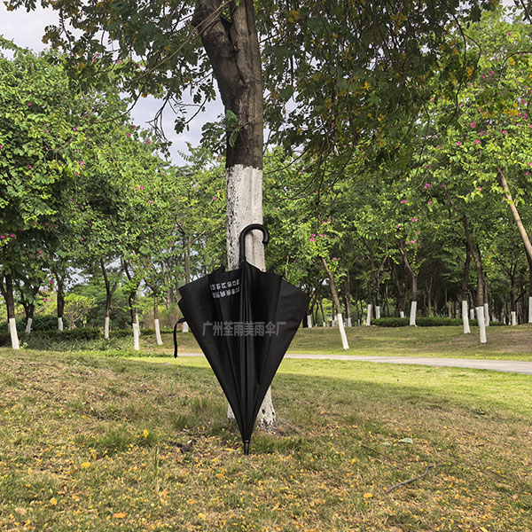塑料弯钩手柄、耐用又大方、伞布春亚纺防泼水布料,伞面两个logo对称丝印,伞面都大伸展直径120CM
