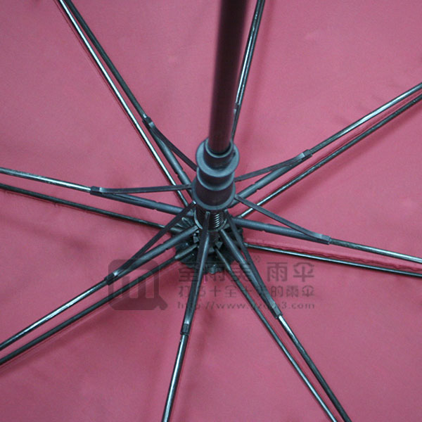 采用8条纤维伞骨架,纤维中棒,自动开关,配搭高密度抗紫外线PG布料,伞面单色丝印