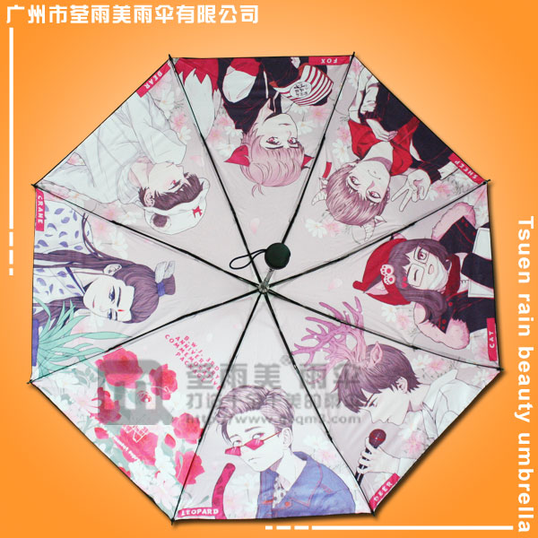 雨伞尺寸23寸,展开伞架直径约116cm 经济、实用、大方!采用8条钢铁伞骨架配搭高密度碰起黑胶布料,到三杆玖和伞架采用双层防生锈黑色处理经久耐用,伞布高密度防水防紫外线处理,伞布里面数码印动漫卡通动感十足。