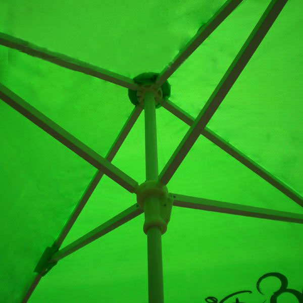 采用4条方管铝合金骨架制作工艺,铝合金中棒,配搭高密度抗紫外线化纤布料,logo单色丝印4面结实耐用