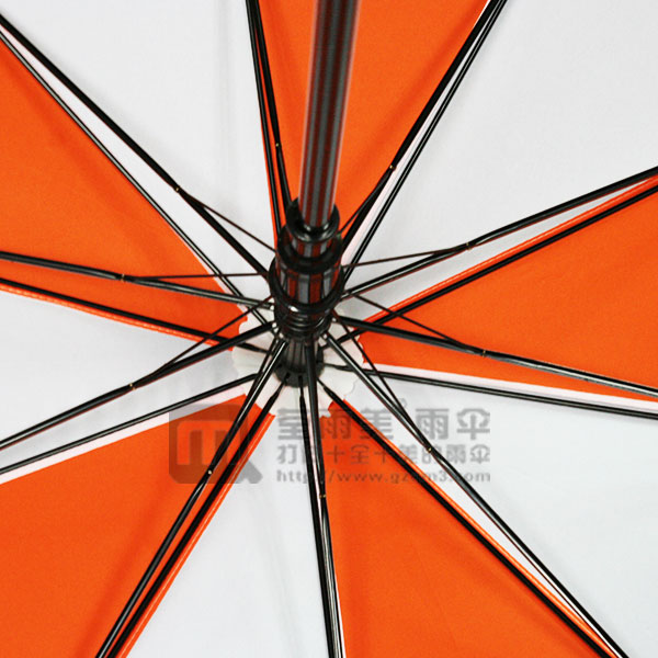 采用8条纤维骨架钢铁中棒,配搭pg布料高密度防水防紫外线经久耐用,塑料弯钩伞头橙色间白色布更加鲜艳,白色印刷橙色logo更加显眼清晰显眼