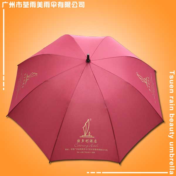 【广州雨伞厂】生产-佳多利酒店高尔夫伞 广州太阳伞厂 广州帐篷厂 广州制伞厂 雨伞厂,雨伞尺寸27寸,展开伞架直径约137cm 实用、美观,全纤维中段式开关全纤维材料防折断,硬胶塑料弯手柄可持可挂方便,枣红色碰起布印金色logo清晰有档次