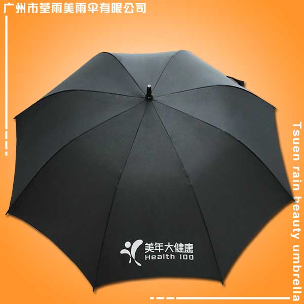 雨伞厂 生产-美年大健康咨询广告伞 荃雨美雨伞厂 广州市雨伞厂 雨伞加工厂、伞架采用8条纤维伞骨纤维中棒隐形自动开关,黑色碰起布印刷单色logo简洁、大方、纤维材质柔软性好耐抗外力具有防雷不导电作用、打开尺寸137cm适合商务用伞。