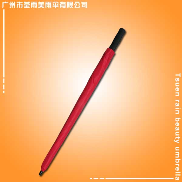 雨伞厂家 生产-粤盛印刷广告雨伞 荃雨美雨伞厂家 广告伞 雨伞广告、大红色190T碰起布三色logo印刷、隐形开关、纤维伞架搭配海绵伞柄舒适耐用、隐形开关纤维伞骨30寸雨伞,展开伞架直径约152cm 韧性好、耐用