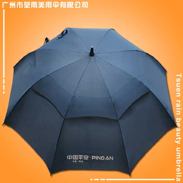 广州荃雨美雨伞厂 定做-平安双层新logo雨伞 广州雨伞厂 广州太阳伞厂 广州帐篷厂、雨伞尺寸30寸,双层伞面展开伞架直径约152cm 实用、不易折断、双层纤维伞架搭配双层碰起布面料,海绵手柄伞面单色logo丝印简洁、大方。