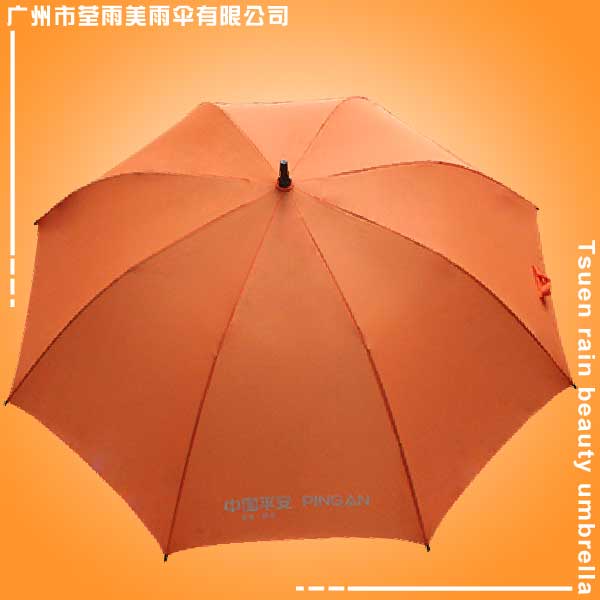 佛山雨伞厂 定做-平安保险高尔夫伞 佛山荃雨美雨伞厂 佛山制伞厂 、雨伞尺寸30寸,展开伞架直径约152cm 实用、美观、橙色碰起布是平安VI颜色搭配原胶纤维伞架,海绵手柄、伞面单色logo印两面简洁、清晰。