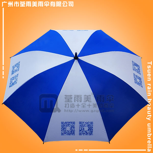 佛山雨伞厂 佛山高尔夫制伞厂 雨伞加工厂 雨伞厂 佛山太阳伞厂、伞面够大、伞骨不生锈、伞布防泼水处理、打开直径137cm、原胶塑料弯手柄、伞面碰起布防嗮防泼水处理、二维码丝印简单清晰