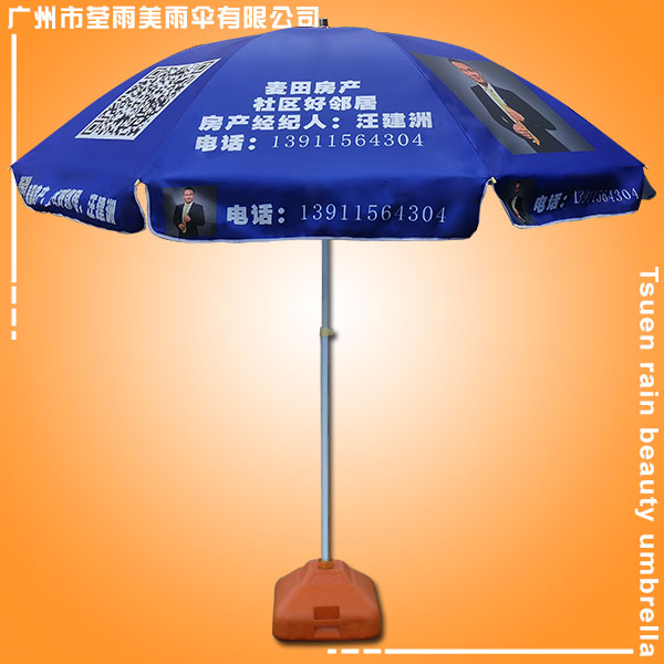 广州太阳伞厂 鹤山太阳伞厂 太阳伞广告定制 户外广告太阳伞 太阳伞厂、雨伞尺寸52寸,展开伞架直径约260cm 伞布过银胶防嗮好、4.3防风伞架烤白漆工艺、210加密银胶牛津布制作、伞面数码印工艺制作。