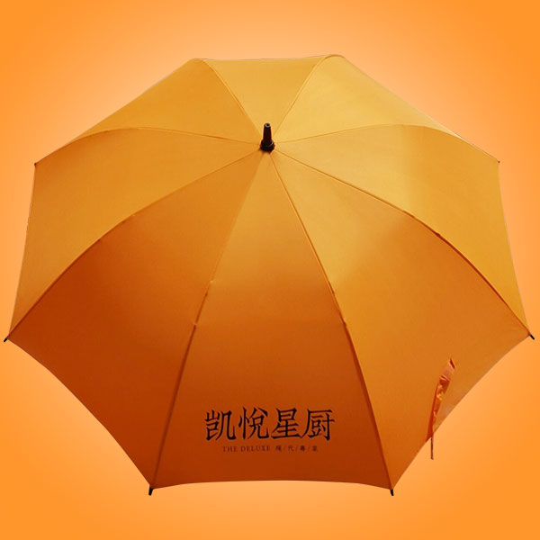 雨伞厂家 直杆广告雨伞 雨伞厂 凯悦星厨高尔夫雨伞 鹤山雨伞厂、橙色面料鲜艳光亮,雨伞尺寸够大方便双人使用、中段式式纤维伞骨防雷防电设计结实耐用,伞面单色丝印、海绵手柄舒适大方!