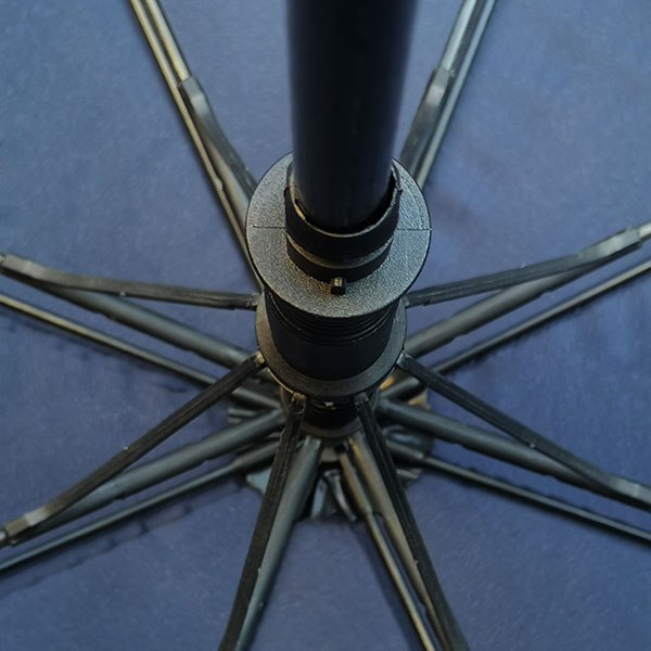 鹤山市荃雨美雨伞厂 鹤山雨伞工厂、原胶颗粒伞架制作,伞面防泼水处理、喷皮磨砂加长伞头、方形开关搭配30寸纤维伞骨防滑伞顶,伞面金色丝印两片。