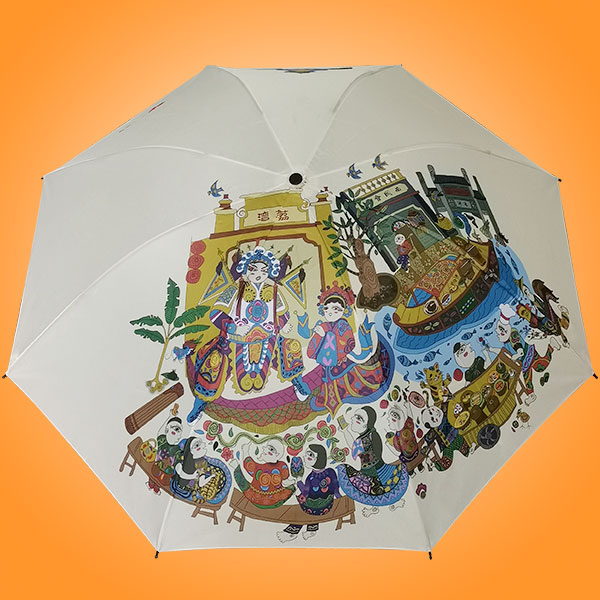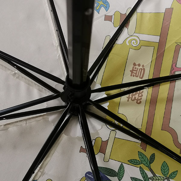 到四杆烤漆伞架搭配磨砂伞头,伞布春亚纺热转印制作色泽鲜艳