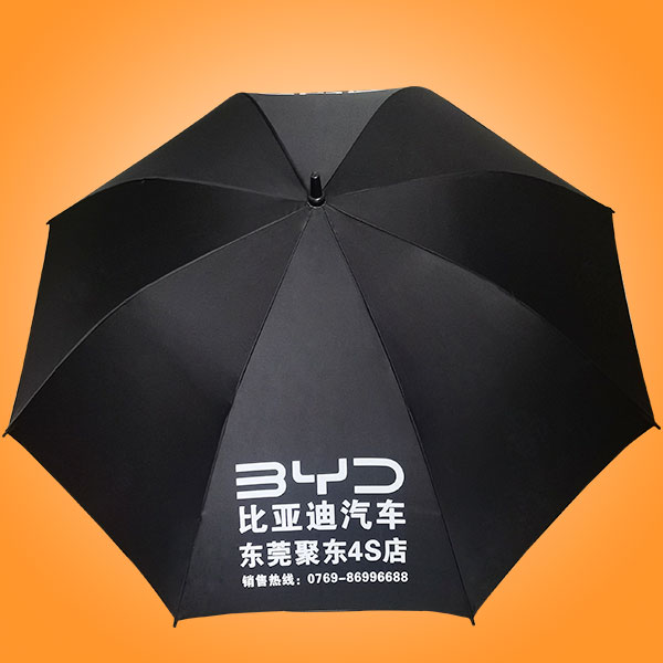 东莞雨伞厂 比亚迪东莞4S店雨伞 直杆广告伞 雨伞工厂、高尔夫纤维伞架、碰击布防泼水布料、EVA海绵手柄防滑、不生锈、不导电、防泼水、防晒、柔韧性好