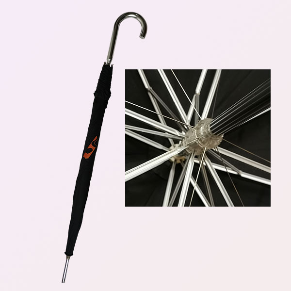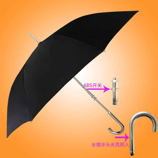 一款推拉式直杆伞、伞架水镀防生锈处理、伞骨纤维柔韧性好、伞面春亚纺防泼水布料、是一款高档商务雨伞。