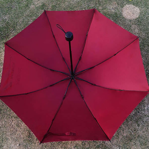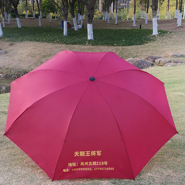 三折倒杆烤漆伞架,碰起布伞面结实耐用防晒、防雨,塑胶伞头用不脱色,伞面金色丝印,打开尺寸0.96cm