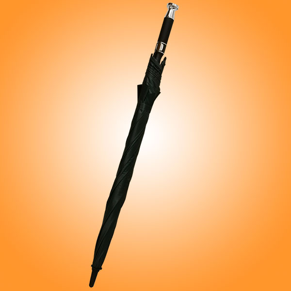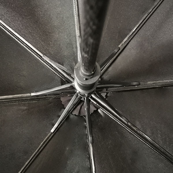 春亚纺黑胶布遮阳防雨耐用,金色广告logo显眼,全纤维高尔夫伞架搭配金属环型伞头精美。