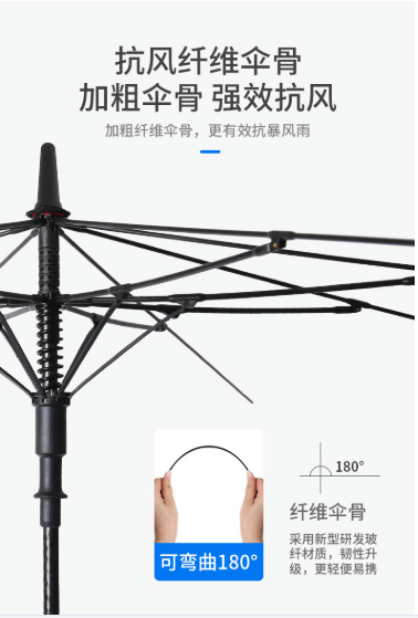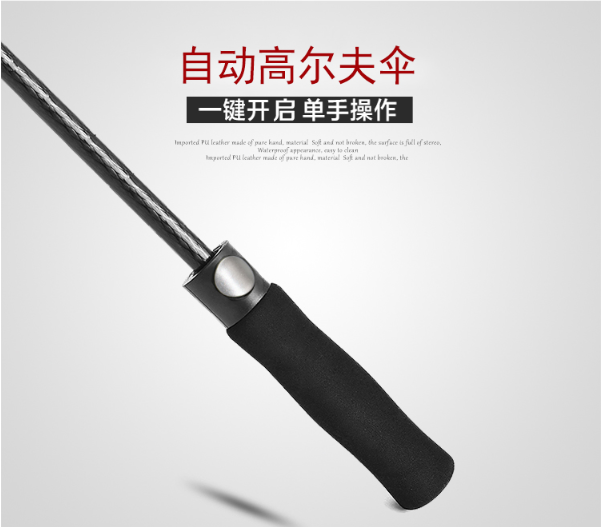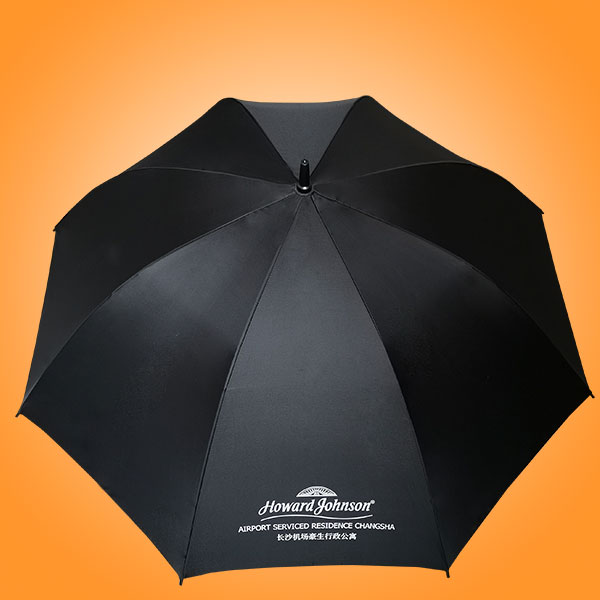 高尔夫雨伞,长沙市机场豪生公寓雨伞,伞骨纤维材质高尔夫伞架,伞面春亚纺防泼水处理,单色丝印白色。