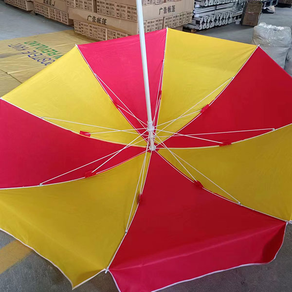 乳白烤漆太阳伞伞架,伞骨采用5.0防风伞骨制作,伞布420加密牛津布、黄兰相间制作色彩分明结实耐用。