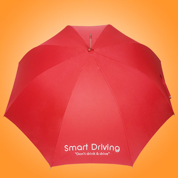 铝合金纤维伞骨、磨砂铝合金手柄、不生锈、210春亚纺银胶布料红色,伞面两个logo对称丝印两片,伞架防生锈处理耐用。