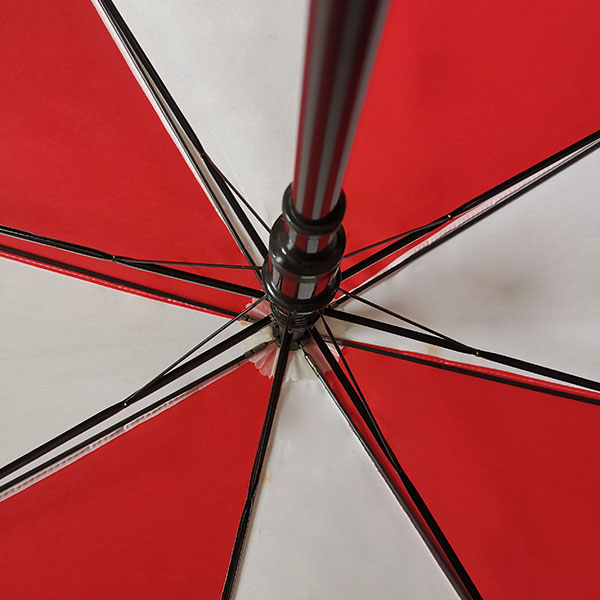 27寸半纤维钢铁中棒雨伞、间隔颜色丝印单色logo、14厘中棒雨伞春亚纺布料制作。